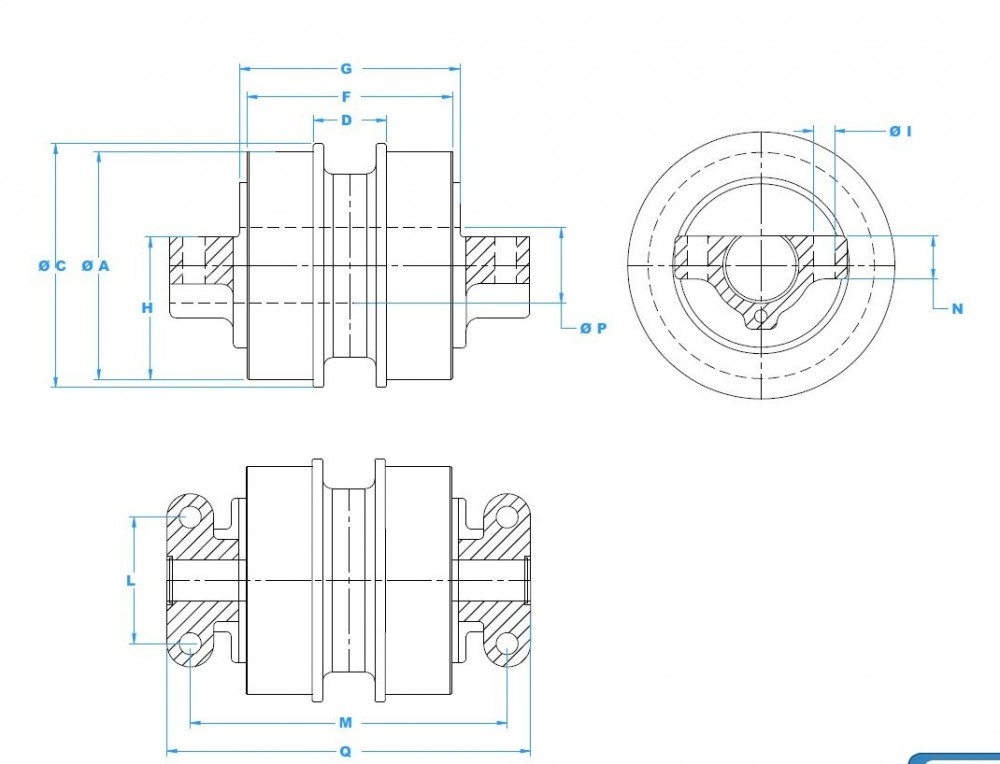 Különböző típusú építőipari gépekhez értékesítünk alsó görgőket. A láncszemek és az alsó görgők kopása után a gép futóműve leereszkedik, ami növeli a terhelést, amely ezután a vezetőkerékre, a hajtókerékre és a hidromotorra hat.