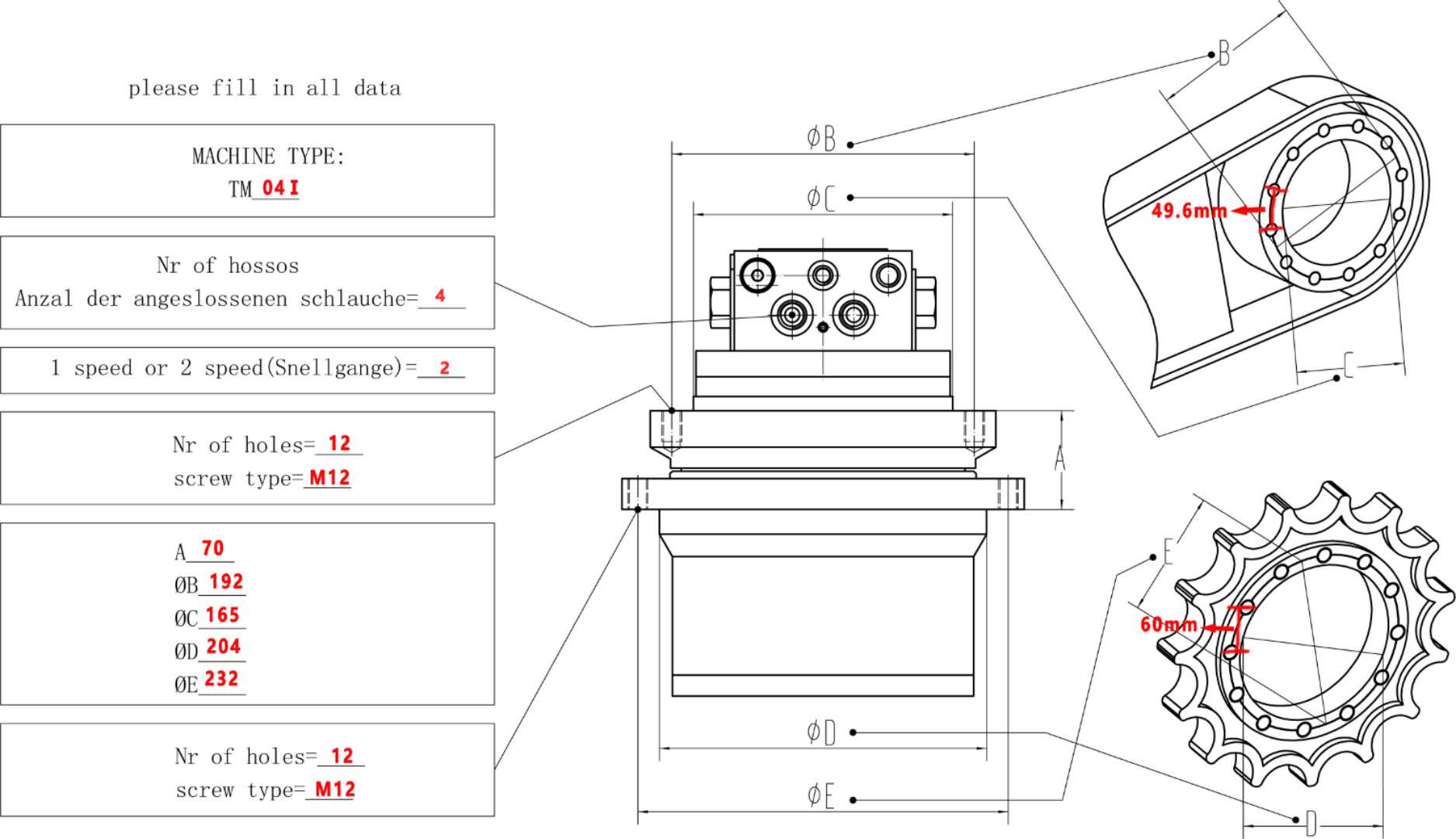 Miért válassza a mi hidromotorunkat?Minden hidromotor két túlfolyó nyílással van felszerelve. Ezáltal univerzális berendezéssé válik, és az Ön kotrógépének bal és jobb oldalára is felszerelhető. A túlfolyó nyílás kiválasztásának lehetősége tovább megkönnyíti a hidraulikus tömlőkkel való manőverezést. Hidromotorjaink hajtókerékének csavarozása teljesen problémamentes. Ha az eredeti hajtókerék nem kompatibilis a hidromotorunkkal, szívesen ajánlunk Önnek megfelelő alternatívát. Minden hidromotor nagyon erős és gyors áttétellel rendelkezik. A beszerelés során ügyeljen arra, hogy ne keverje össze a hátrameneti fokozattal. Ez a hidromotor meghibásodásához vezethet. |
