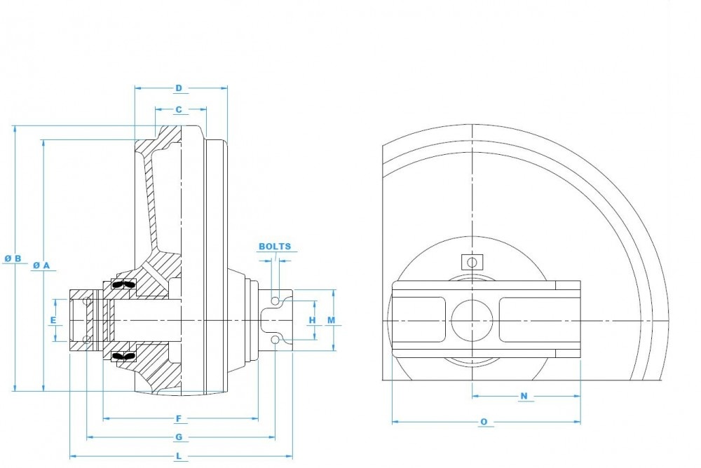 A vezető-feszítő kerekek minibagerekhez, kotrógépekhez és egyéb lánctalpas gépekhez feszítő egységgel is szállíthatók.
